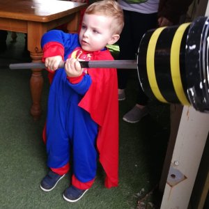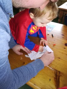 We took a train ride around the woodlands in search of a villan. On the way we saw Santa’s reindeer and Tinkerbells fairy house. The train journey was lots of fun. We made a stop at the Superhero Academy where the kids got to do some arts and crafts and Superhero training.